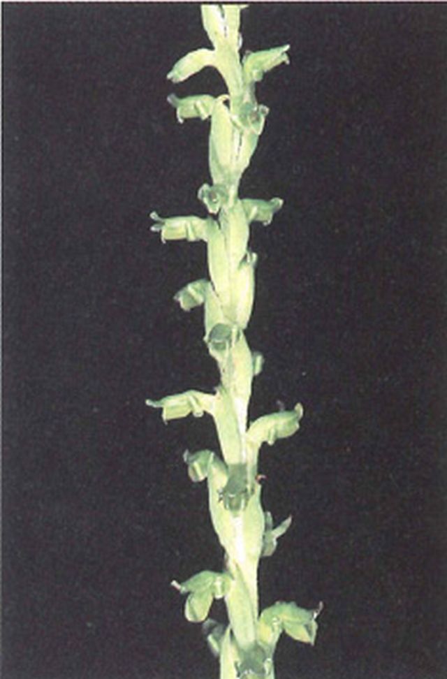 Found in Mexico and Guatemala in the understory of pine forests at elevations around 2900 meters as a medium to large sized, cold growing terrestrial with fasiculate-tuberous roots giving rise to 3 or 4, linear-lanceolate, held up to the the middle of the greenish yellow stem, present at blooming leaves that blooms in the early fall on an erect, racemose, 12" [30 cm] long, densely 16 to 45 flowered inflorescence carrying flowers that are held at almost a right angle to the ovary.