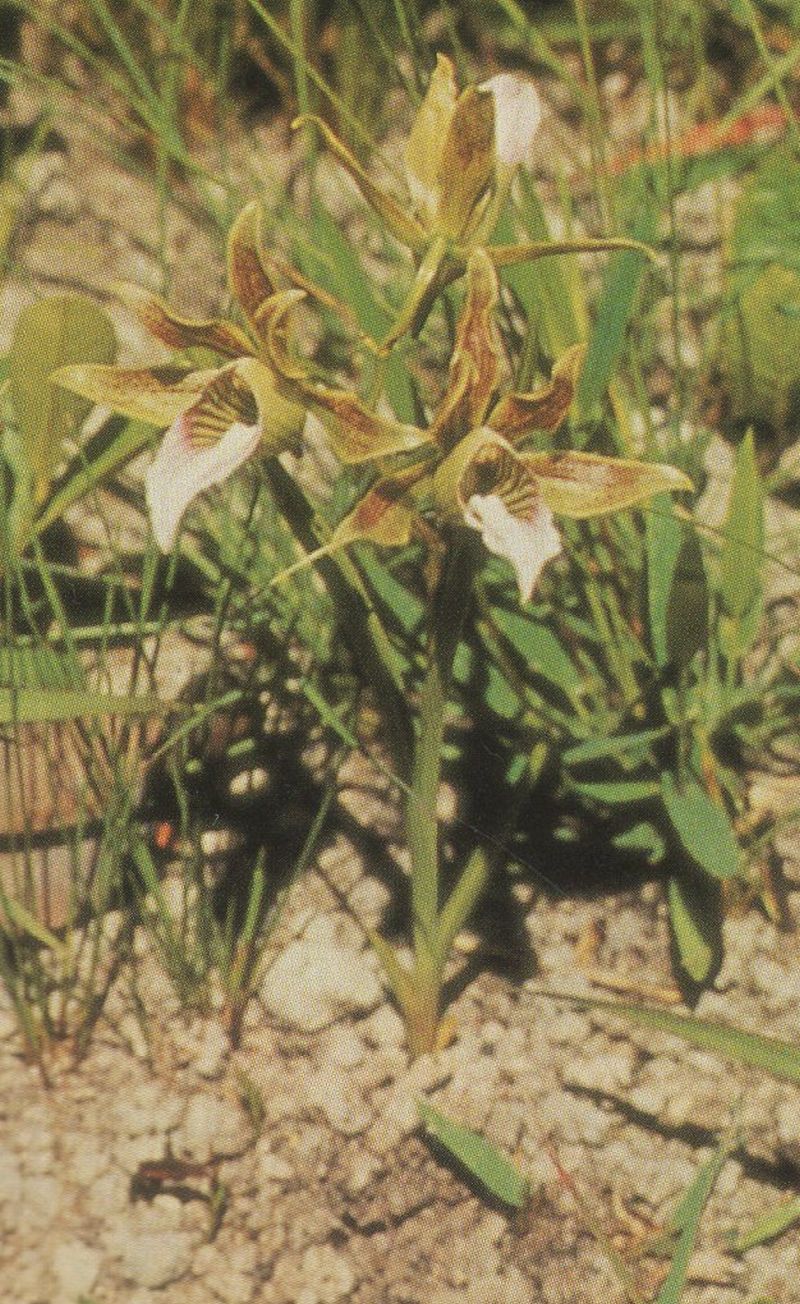 Found in Brazil and Paraguay in grassy fields with hydromorphic soils [seasonally dry then flooded to very wet] as a small sized, cool growing terrestrial with an erect, leafless, 4 to 5" [10 to 12.5 cm] long, 2 to 4 flowered inflorescence with the flowers appearing in the late winter and early spring.
