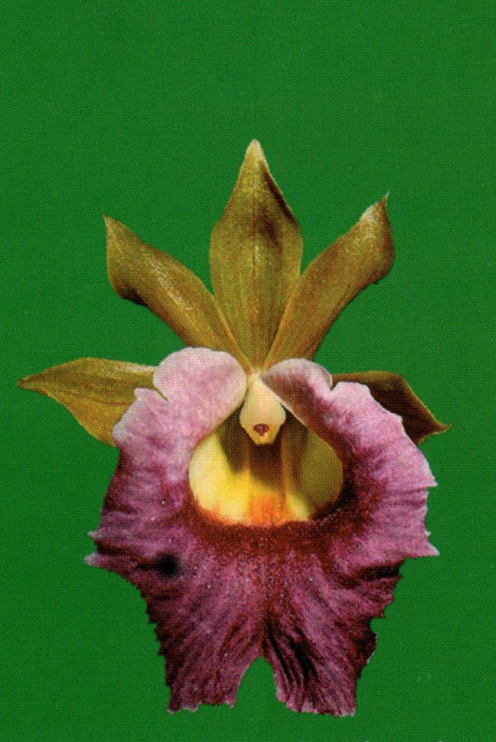 Found in San Marcos department of Guatemala in hot subtropical, very wet forests on palms at elevations around 150 meters as a miniature sized, hot growing epiphyte with thick, green with purple areas pseudobulbs enveloped by purple spotted, adpressed sheaths and carrying elliptic, reddish stained, thin, deciduous, trinerved, plicate leaves that blooms on short, single flowered inflorescence.