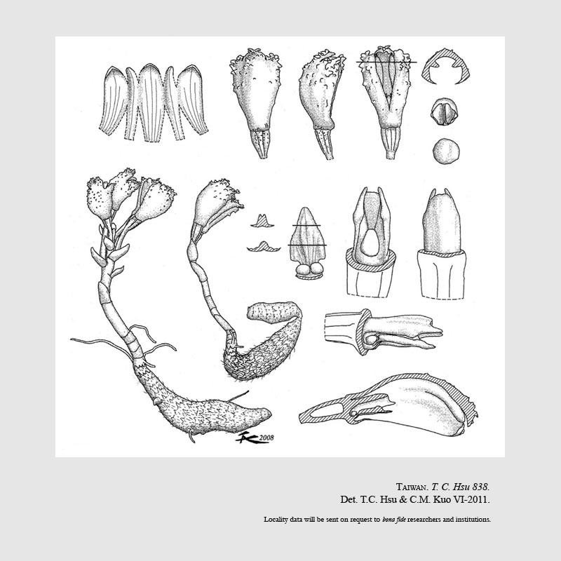 Gastrodia albida T.C.Hsu & C.M.Kuo 2011 Drawing by © T C Hsu and The Epidendra Website