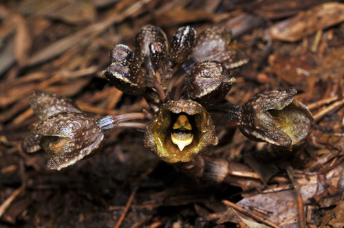 Found in Taiwan as a miniature sized mycoheterotrophic terrestrial.