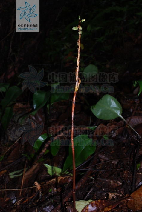 Found in central Taiwan in open humid forests at elevations around 1100 to 1300 meters as a medium to large sized, cool growing, mycoheterotrophic terrestrial with a stout rhizome giving rise in the summer to an erect, yellowish brown below, dull purplish brown above, to 28" [70 cm] long, rachis 2.8 to 10" [7 to 25 cm] long, laxly 7 to 20 flowered inflorescence with caducous, ovate-lanceolate, acute apically floral bracts