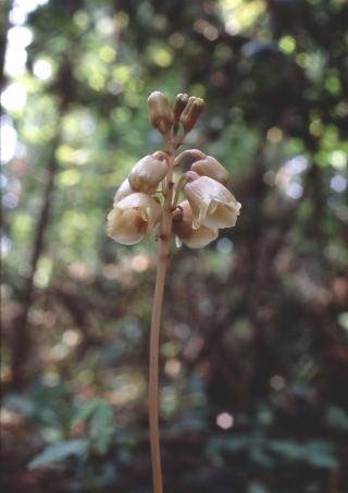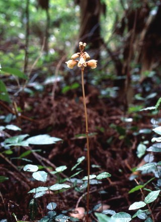 Found in Honshu Japan and central and northern Taiwan in wet montane evergreen broadleaf forests at elevations of 600 to 1500 meters as a miniature to medium sized, cool to cold growing mycoheterotrophic terrestrial that blooms in the late spring and early summer on an erect, long pedunculate, 5 to 15 flowered inflorescence with ovate to elliptic, much shorter than the ovary floral bracts