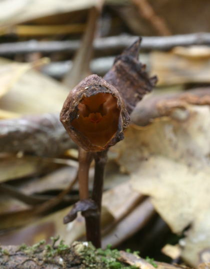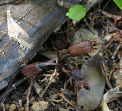 Found in Japan and Ryukyu Islands as a dwarf sized, cold growing, leafless mycoheterotrophic terrestrial with a well developed, tuberous rhizome giving rise to an erect stem carrying 2 to 3 remote, tubular sheaths that blooms in the spring with a few flowered inflorescence carrying fragrant [not nice] flowers