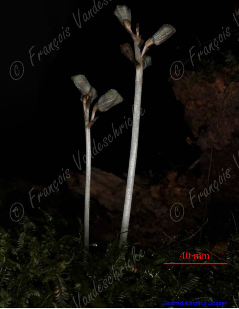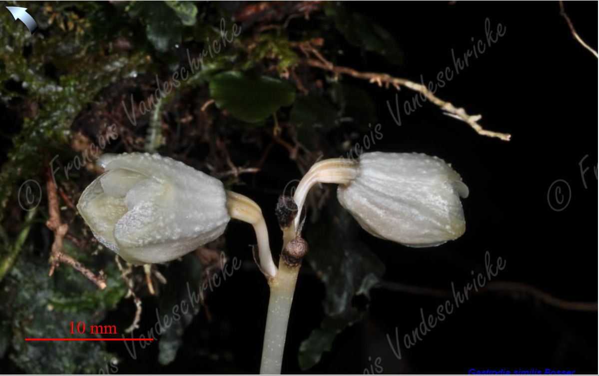 Found in Reunion as a leafless, small sized, warm to cool growing mycoheterotrophic terrestrial that blooms in the earlier winter on an erect, few flowered inflorescence
