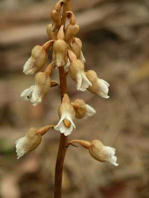 Found in the eastern highlands of Victoria Australia in tall moist forests and montane forests as a large sized, cold growing, mycoheterotrophic terrestrial orchid that blooms in the spring and summer on an erect, 4' [120 cm] tall, 8 to 70, sucessively flowered, racemose inflorescence with nodding flowers