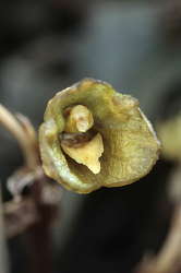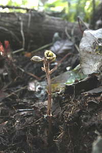 Found in Malaysia, Java and Sumatra at elevations around 400 meters as a mini-miniature sized, hot growing mycoheterotrophic orchid with a horizontal, fleshy, cylindrical, branching rhizome giving rise to an erect, terete, dark brown, 3.6" [9 cm] long, 4 to 5 flowered inflorescence.
