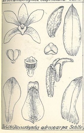 References W3 Tropicos, Kew Monocot list , IPNI ; *The Orchidaceae of German New Guinea Schlechter 1912 as Glossorhyncha adenocarpa drawing fide;