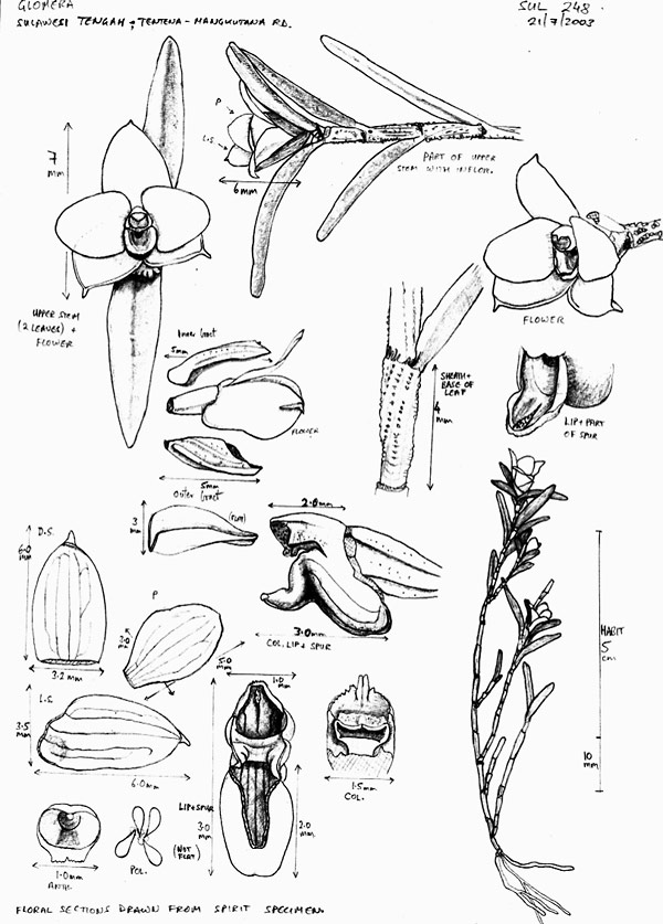 Glomera uniflora J.J.Sm.1908 SECTION Uniflorae Drawing by © Peter O'Byrne and The Swiss Orchid Foundation at the Jany Renz Herbaria Website