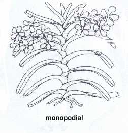 Sympodial: Growing from a new lead forming a new pseudobulb with each spurt of growth - see photo link