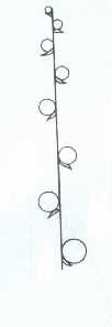 Torulose: an elongated cylindrical, terete or ellipsoid shape that is pinched and then slightly swollen at intervals and less so than moniliform