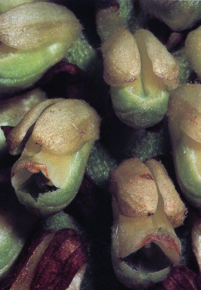Found in Venezuela, Colombia and Ecuador in paramo around 3500 meters as a medium sized, cold growing terrestrial with basal, rosulate, oblong-obovate, acute to abruptly acuminate leaves that blooms in the fall on a terminal, erect, enveloped almost completely by chlorophyll-bearing sheaths grading smaller above, to 20" [50 cm] long, cylindric, rachis to 4" [10 cm] long, densely many flowered inflorescence with ovate to ovate-lanceolate, concave, acute, sparsely pubescent floral bracts.