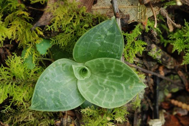 Found in western Hubei and Yunnan provinces of China and northern Taiwan in mixed evergreen and broad-leaved forests at elevations of 900 to 3700 meters as a small sized, cool to cold growing terrestrial with an erect stem carrying 3 to 6, rosulate at the base of the stem, abaxially pale green, adaxially green with white venations and irregular marking, ovate to ovate-orbicular, obtuse to acute apically, cordate, rounded or broadly cuneate below into the base leaves that blooms in the spring through fall on a green, erect, 6.8 to 11.2" [17 to 28 cm] long, pubescent, laxly 8 to 20 flowered inflorescence with 3 to 5 sterile bracts and ovate-lanceolate, acuminate floral bracts and carrying weakly opening flowers