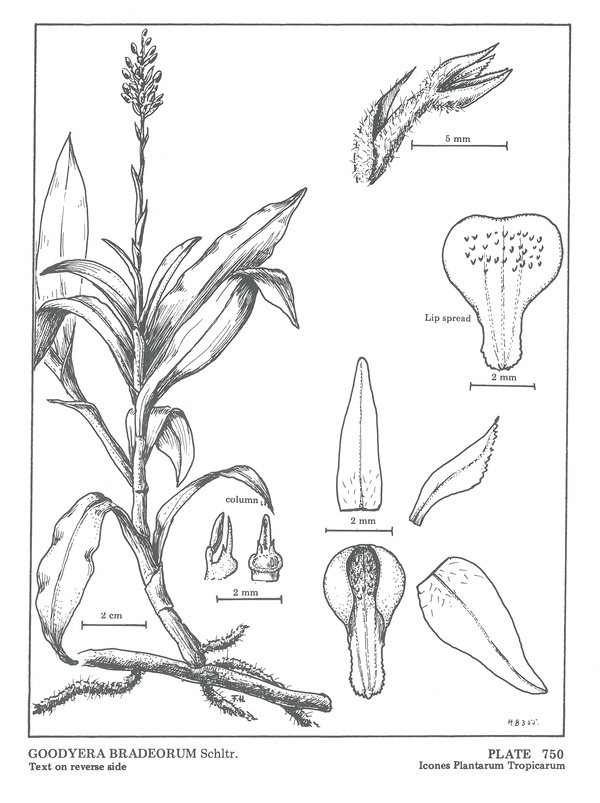 Goodyera bradeorum Schltr. 1923 TYPE Drawing by © Fritz Hamer and The Swiss Orchid Foundation at the Jany Renz Herbaria Website
