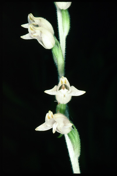 Found on Taiwan in forest in shady areas at elevations of 700 to 1600 meters as a small to medium sized, warm to cool growing, miniature terrestrial with an ascending, stout stem carrying 5 to 7, widely spaced or clustered towards the apex of the stem, abaxially grayish white, adaxially green with white or pale green, ellliptic to oblong, acute, broadly cuneate below into the petiolate base leaves that blooms in the fall on an erect, pale grayish green, pubescent, 10" [25 cm] long, many flowered inflorescence with 2 to 3, sterile bracts and lanceolate, pubescent, acuminate floral bracts with the flowers held in a spiral.