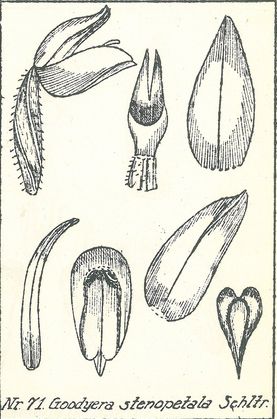 Goodyera stenopetala Schltr. 1911 SECTION Goodyera Type Drawing by © Schlechter and The Swiss Orchid Foundation at the Jany Renz Herbaria Website