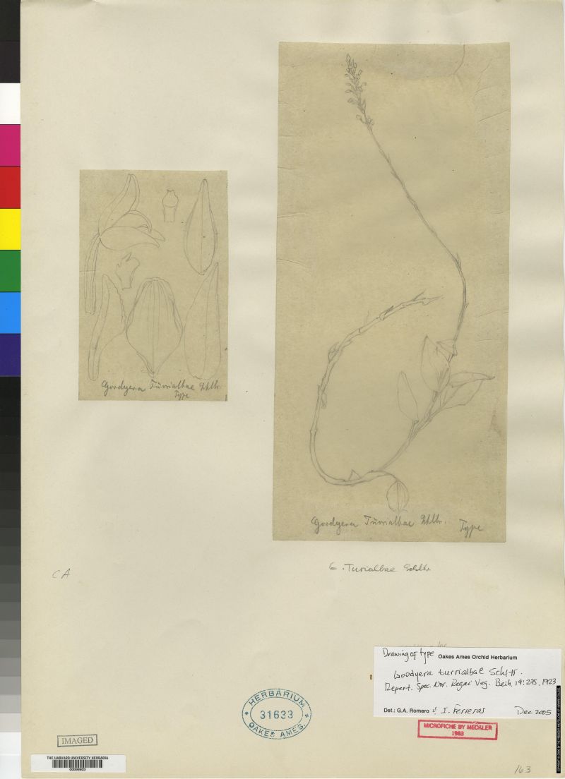 Goodyera turialbae Schltr. 1923 TYPE Drawing by © Rudolf Schlechter and The Swiss Orchid Foundation at the Jany Renz Herbaria Website