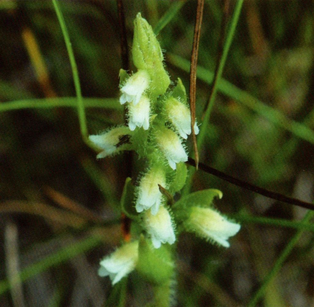Found in northwestern Sichuan and northern and western Yunnan provinces of China in coniferous forests on mossy ground at elevations of 2600 to 3900 meters as a miniature to small sized, cold growing terrestrial with a rosette of solid green, elliptic to lanceolate-elliptic, acute, cuneate below into the petiolate base leaves that blooms on an erect, terminal, peduncle 1.8 to 3.6" [4.5 to 9 cm] long, pubescent, with 2 to 9 sterile bracts, rachis 1.4 to 4" [3.5 to 10 cm] long, secund, densely 12 to 20 flowered inflorscence with linear-lanceolate to linear, basal ones slightly exceeding the flowers, pubescent, acuminate floral bracts and carrying weakly opening, white to pale green small flowers.