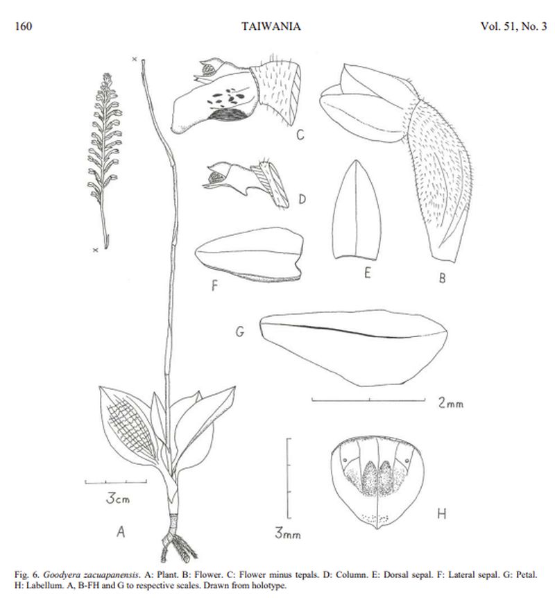 References W3 Tropicos, Kew Monocot list , IPNI ; * Taiwania, 51(3): 153-161, Notulae Goodyerinae (III) Ormerod 2006 drawing fide;