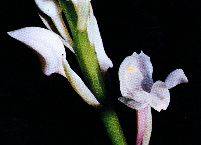 Found in southern Florida as a medium sized, warm growing terrestrial with a cylindrical pseudobulb carrying 2, apical, plicate, oblanceolate, green leaves that blooms in the fall on a terminal, erect, to 10" [25 cm] long, 5 to 15 flowered inflorescence.