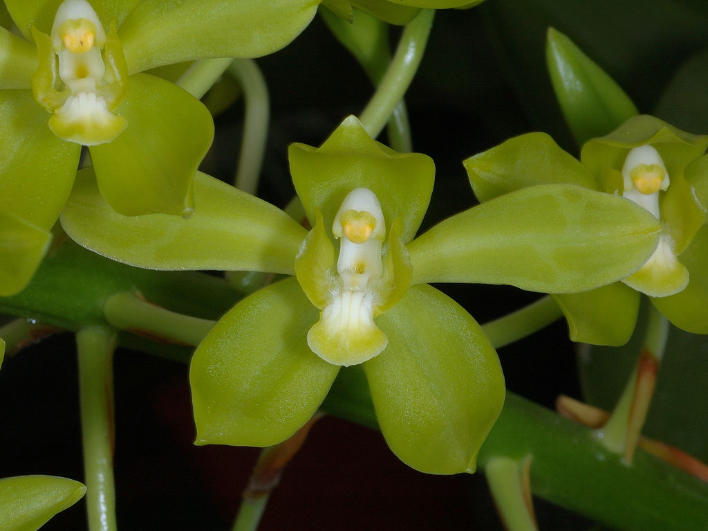 Found in Borneo, the Lesser Sunda Islands, the Moluccas, The Philippines, Sulawesi, the Solomon Islands, the Bismark Archipelago, Papua and New Guinea, Fiji and Santa Cruz Islands in lowland and costal forests at elevations of sea level to 100 meters overhanging beaches, lagoons, and coconut plantations on tree trunks and branches and likes bright light as a large to giant sized, hot growing epiphyte with ovoid to ellipsoid, laterally compressed pseudobulbs carrying 5 to 8 broad, coriaceous, linear-ligulate, dull green, basally clasping leaves that blooms on a basal, 4' [120 cm] long, erect to arching, many, waxy flowered, racemose inflorescence arising on a mature pseudobulb that has imperfect flowers at the bottom few rows and many [100], waxy, color variable, heavy textured, campanulate flowers occuring in the late spring or summer. It can become a huge plant, and is from