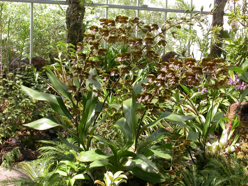 Found in the Philippines at elevations of sea level to 300 meters as a giant sized, hot growing epiphyte with large flattened pseudobulbs carrying up to 4, apical, elliptic-oblong, 12" [30 cm] long leaves that blooms in the spring on a 40" [100 cm] long, many flowered, arching inflorescence with up to 50, slightly fragrant flowers.