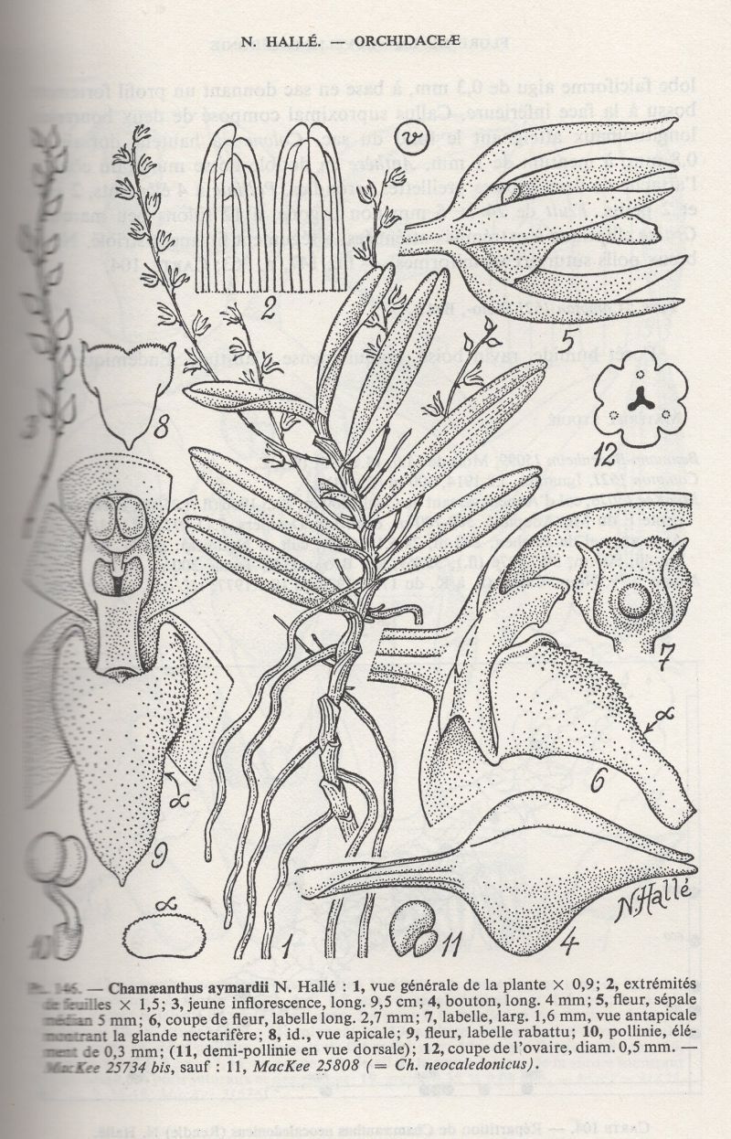 References W3 Tropicos, Kew Monocot list , IPNI ; Flore de la Nouvelle-Caledonie et Dependences Vol 8 Orchidaceae Halle 1977 as Chaemanthus aymardii drawing fide; Rudolf Schlechter Die Orchideen Band 1B lieferung 22 1329 - 1392 Brieger 1989 Drawing fide;
