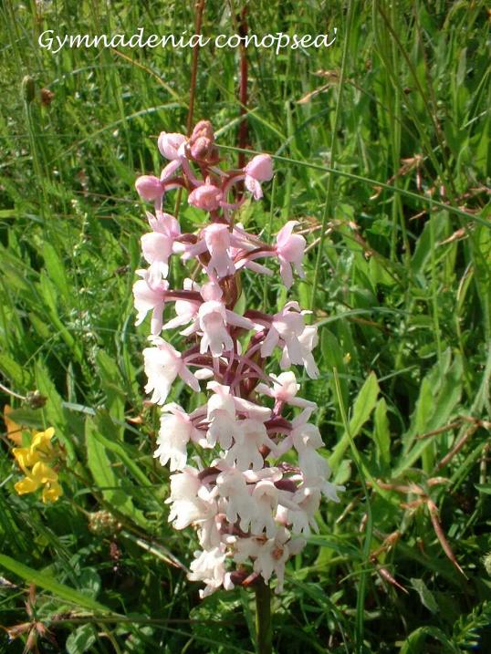 Synonyms Gymnadenia alpina (Turcz. ex Rchb.f.) Czerep. 1981; Gymnadenia anisoloba Peterm. 1849; Gymnadenia comigera Rchb. 1830; Gymnadenia conopsea f. albiflora Y.N.Lee 2002; Gymnadenia conopsea raçe alpina (Turcz. ex Rchb.f.) Rouy 1912; Gymnadenia conopsea subsp. serotina (Schönh.) Dworschak 2003; Gymnadenia conopsea var. alpina Turcz. ex Rchb.f. 1851; Gymnadenia conopsea var. serotina Schönh. 1850; Gymnadenia gracillima Schur 1871; Gymnadenia ibukiensis Makino 1912; Gymnadenia orchidis var. pantlingii Renz 2001; Gymnadenia ornithis L.C. Rich. 1818; Gymnadenia psuedoconopsea [Gren.] Rouy. 1912; Gymnadenia pyrenaica Giraudias 1882; Gymnadenia sibirica Turcz. ex Lindl. 1835; Gymnadenia splendida Dworschak 2002; Gymnadenia splendida subsp. odorata Dworschak 2002; Gymnadenia transsilvanica Schur 1866; Gymnadenia vernalis Dworschak 2002; Gymnadenia wahlenbergii Afzel. ex Rchb.f. 1851; Habenaria conopsea (L.) Benth. 1880; Habenaria conopsea Franc. 1881; Habenaria gymnadenia Druce 1897; Orchis conopea Gras 1862; Orchis conopea var. albiflora Tinant 1836; Orchis conopea var. major Tinant 1836; *Orchis conopsea Linne 1753; Orchis cornopica Mill. 1768; Orchis ornithis Jacq. 1774; Orchis peloria Foucault ex Poir. 1816; Orchis pseudoconopea Gren. 1869; Orchis pseudo-conopsea Gren. 1865; Orchis pseudoconopsea P.E.Parm. 1894; Orchis setacea Gilib. 1792; Orchis suaveolens Salisb. 1796; Satyrium conopseum (L.) Wahlenb. 1826