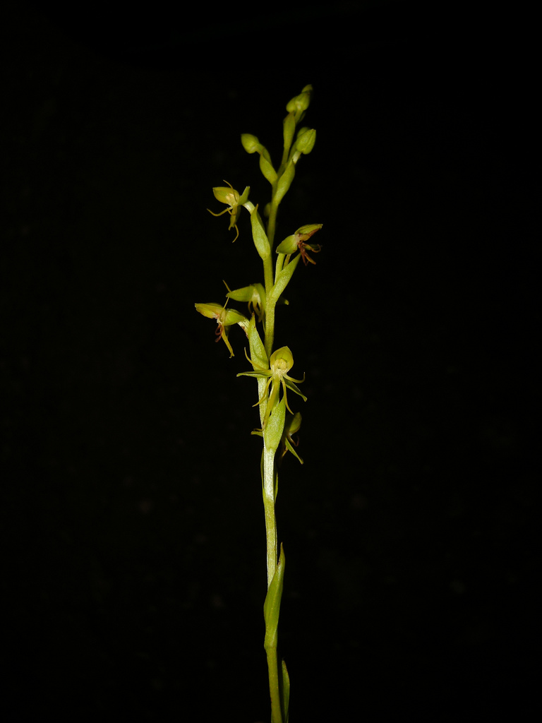 Found in Brazil, Paraguay and Argentina as a medium sized, cold growing terrestrial with an erect, leafy stem carrying lanceolate to oblong-lanceolate, acute to apiculate, dorsally carinate, 3 nerved, decreasing in size above leaves that blooms in the winter on an erect, terminal, many flowered, 3 to 6" [7.5 to 15 cm] long, few to many flowered inflorescence witherect-patent, 3 nerved, ovate-lanceolate, generally longer tha the ovary floral bracts and carrying fragrant flowers