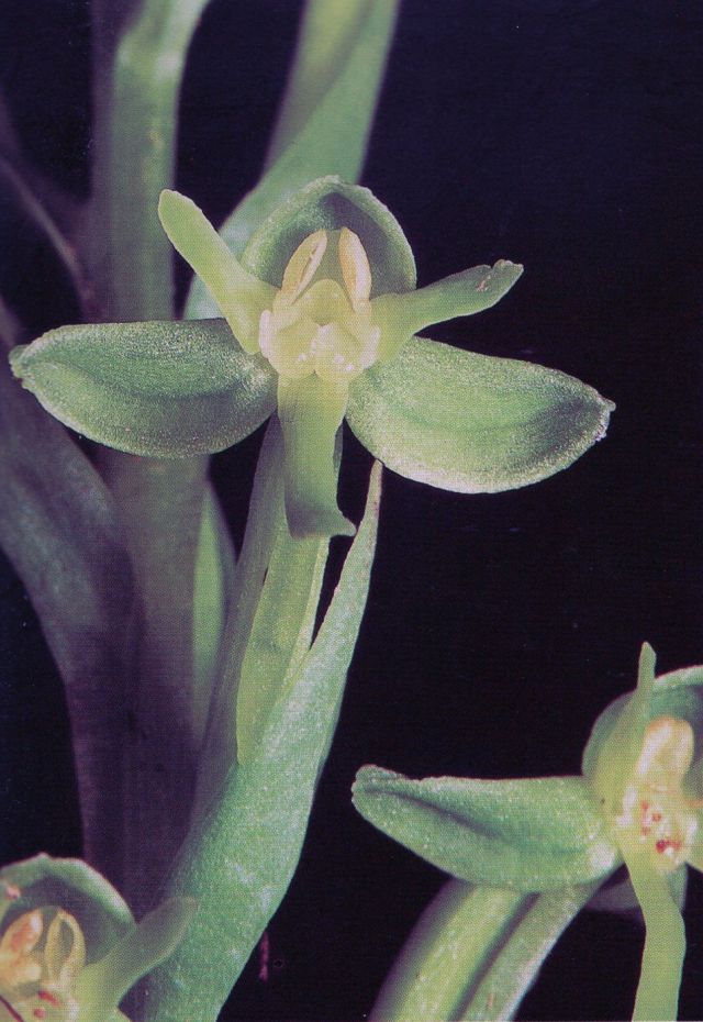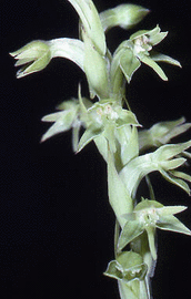 Found in the Bahamas, Puerto Rico, Jamaica, Leeward Islands, Windward Islands, Trinidad, Mexico, Guatemala, El Salvador, Honduras, Nicaragua, Costa Rica, Panama, Colombia, Venezuela, Surinam, Ecuador and Peru in wet montane cloud forests at elevations of 600 to 2900 meters as a small to medium sized, cool to cold growing terrestrial or lithophyte with simple, laterally compressed stems carrying many, distichous, lanceolate, conduplicate, all along the stem, progressively decreasing upwards, acuminate leaves that have around 1.6" [4 cm] between each that blooms in the fall on an erect, racemose, 8" [20 cm] long, densely many flowered inflorescence with ovate-lanceolate, usually longer than the ovary floral bracts.