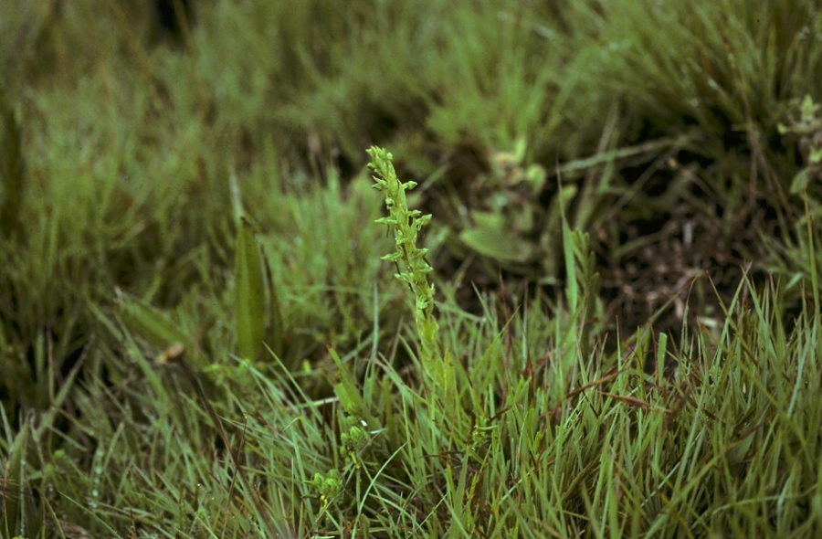 Found in Cape Province, Natal and Transvaal South Africa in sour rocky grasslands at elevations of 1000 to 2500 meters as a miniature to medium sized, cold growing terrestrial with several, large, ovoid-oblong tubers giving rise to a robust, leafy stem carrying sessile, oblong-lanceolate, fleshy, cauline, acuminate leaves grading smaller towards the apex that blooms in the later spring and earlier summer on an erect, 3" [7.5 cm] long, usually densely 25 to 50 flowered inflorescence carrying sweetly fragrant flowers.