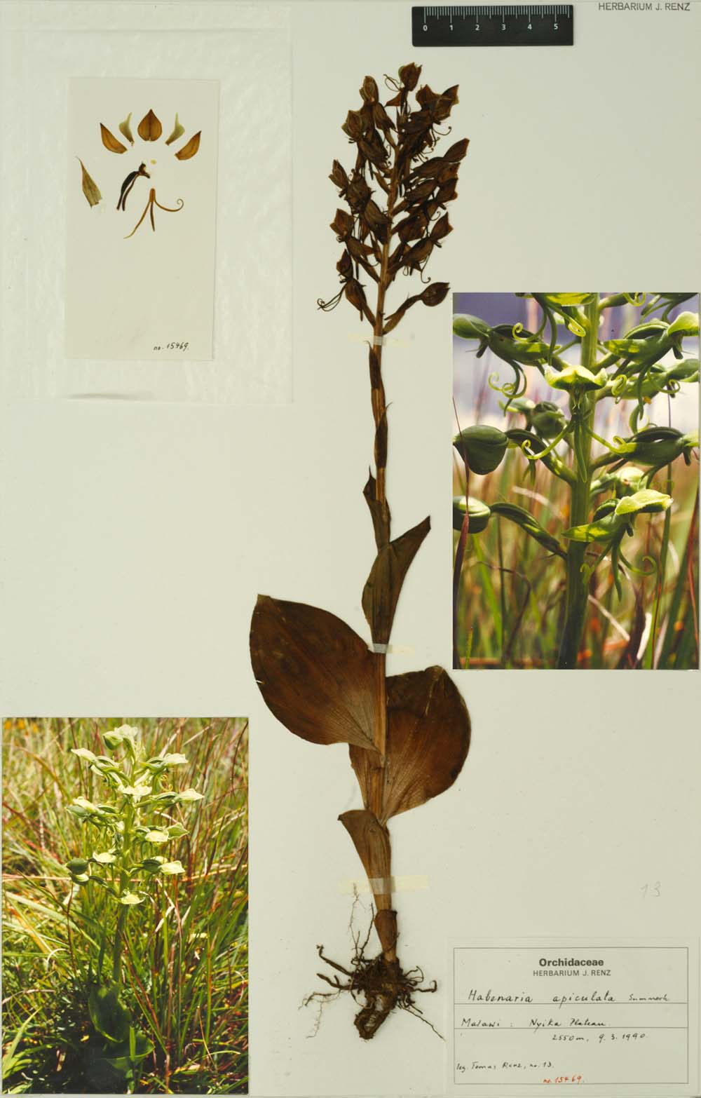 Habenaria apiculata Summerh. 1962 Collection sheet and photos by © Renz and the Swiss Orchid Foundation at the Herbarium Jany Renz Website