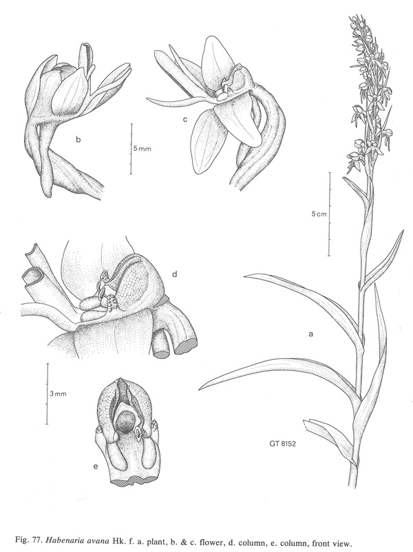 Habenaria avana Hook.f. 1890 SECTION Macroceratitis Kraenzl Drawing by © Seidenfaden and the Swiss Orchid Foundation at the Herbarium Jany Renz Website