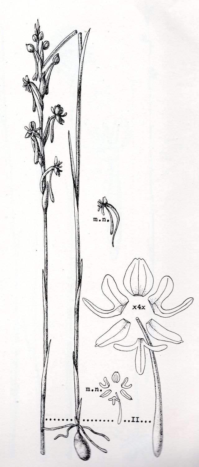 Found in Maranhao', DF, Goias, Matto Grosso, Sao Paulo, Parana', Santa Catarina and Rio Grande Do Sul states of Brazil as well as Paraguay in damp grasslands as a small to medium sized, warm to cool growing terrestrial with an erect stem enveloped by grading larger above, triangular, basally clasping, acute leaves that blooms in the later spring and summer on a terminal, erect, .8 to 2.4" [2 to 6 cm] long, 3 to 10 flowered inflorescence with strongly amplexicaul, short, pale green floral bracts