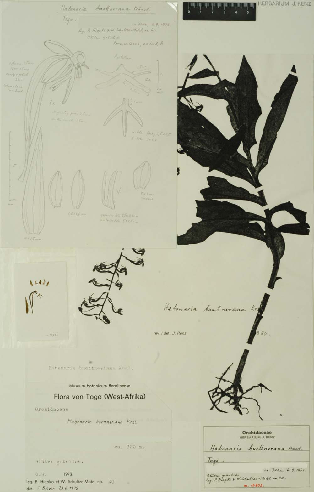 Collection Sheet by © Renz and the Swiss Orchid Foundation at the Herbarium Jany Renz Website