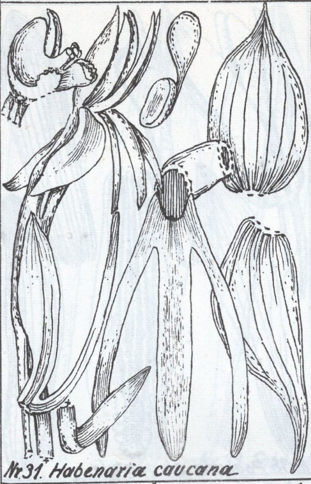 References W3 Tropicos, Kew Monocot list , IPNI ; *Repert. Spec. Nov. Regni Veg. Beih. 7: 37 Die Orchideen der Sudamerikanischen Kordillerenstaaten II Colombia Schlechter 1920; Repert. Spec. Nov. Regni Veg. Beih. 57 Die Orchideen der Sudamerikanischen Kordillerenstaaten II Figuren Atlas Schlechter 1929 Drawing fide; Materials to the Orchid Flora of Colombia Vol 1 Szlachetko & Kolanowska 2017 as Rhinorchis caucana drawing/photo fide