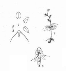 Found in southwestern Sichuan, northwestern Yunnan and northern Fujian China in forests on soil covered rocks at elevations of 2800 to 4200 metrers as a mini-miniature to miniature sized, cold growing terrestrial with oblong, fleshy tubers giving rise to an erect to ascending, slender, pubescent stem carrying 2, nearly opposite, near the middle, orbicular, abaxially yellowish white venation, white ciliate margined, densely finely papillate, acute, narrowing below into the amplexicaul base leaves that blooms in the later summer on a terminal, erect, pubescent, 4 to 14 flowered inflorescence with lanceolate, acuminate, much shorter than the ovary floral bracts.