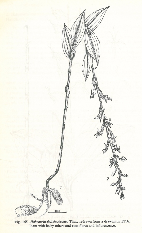 Habenaria dolichostachya Thwaites 1861 SECTION Dolichostachya TYPE for the section Drawing by © M.D.Dassanayake & F.R.Fosberg and the Swiss Orchid Foundation at the Herbarium Jany Renz Website