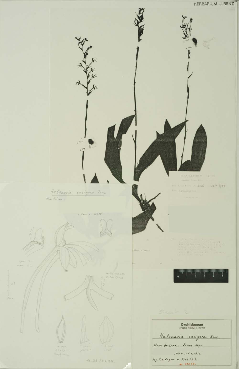 Habenaria ensigera Renz 1987 Drawing by © P Royen and The Swiss Orchid Foundation at the Jany Renz Herbaria Website