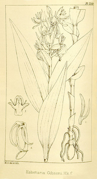 References W3 Tropicos, Kew Monocot list , IPNI ; Indian Orchids A Field Guide to Identification and Culture Vol 1 Pradhan 1976 as H gibsoni drawing good; Orchids of Nilgris Joseph 1987 as H digitata var gibsonii; Orchids of Nilgris Joseph 1987 as H digitata var foliosa; Orchids of India A Glimpse Misra 2007 as H gibsonii photo hmm; Lankesteriana Vol 18 [1]: 23–62 Jalal & Jayanth 2018 photo fide; Orchids of Maharashtra Jalal 2018 photo Fide;