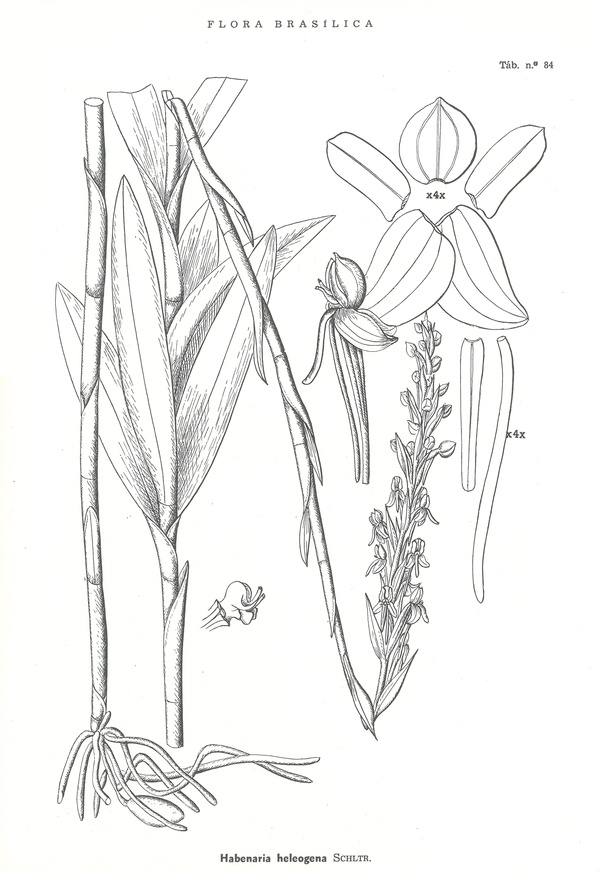 Habenaria heleogena Schltr. 1919 SECTION Seticauda Drawing by © Hoehne and the Swiss Orchid Foundation at the Herbarium Jany Renz Website