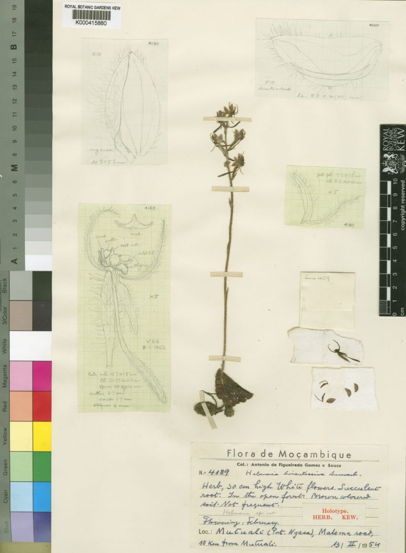 Habenaria hirsutissima Summerh. 1964 SECTION DiphyllaeCollection sheet by © Figueriredo Gomes e Sousa and The Europeana WebSite