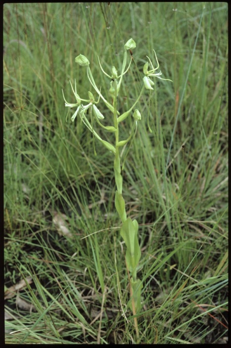 Found in Guinea, Ivory Coast, Togo, Nigeria, Zaire, Central African Republic, Chad, Ethiopia, Kenya, Uganda, Tanzania, Angola, Malawi, Zambia, Zimbabwe and Namimbia in grasslands, woodlands and dambos at elevations of 800 to 1500 meters as a small to large sized, warm to cool growing terrestrial with an ovoid to ellipsoid tuber giving rise to a leafy erect stem carrying 7 to 11, lowermost 1 to 2 mostly sheathing, the middle suberect, ovate to lanceolate, the uppermost grading into bract-like leaves that blooms in the summer on an erect, laxly to fairly densely few to several flowered inflorescence and carrying often sweetly scented flowers