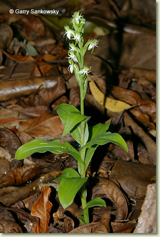 Found in northern tropical Queensland in monsoonal rainforests often near the coast at elevations of sealevel to 200 meters as a small to medium sized, hot growing terrestrial with 6 to 8, scattered along the stem, bluish green, 3 veined leaves that blooms in the spring through fall on an erect, 10 to 16" [25 to 40 cm] long, 20 to 30 flowered inflorescence .