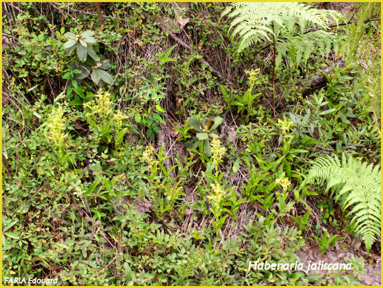 Found in western Mexico in Chihuahua, Nayarit, Jalisco, Michoacan, Mexico, Guerrero, Oaxaca, Vera Cruz and San Juan Potosi states on grassy hillsides and openings or on moist banks mostly in oak or oak/pine forests at elevations around 800 to 2200 meters as a small to large sized, warm to cold growing terrestrial orchid with a small basal tuber giving rise to an erect stem enveloped completely by many lanceolate, narrowly acute, spreading, conduplicate leaves that blooms in the summer and early fall on an erect, to 5" [12.5 cm] long, few to 10 flowered inflorescence.