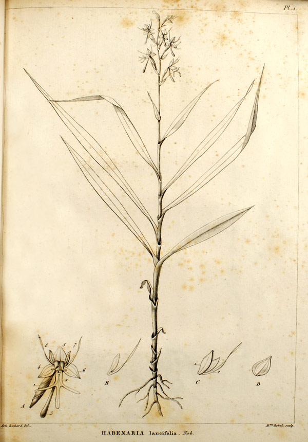 Habenaria lancifolia A.Rich. 1828 Drawing by © A Richard and the Swiss Orchid Foundation at the Herbarium Jany Renz Website