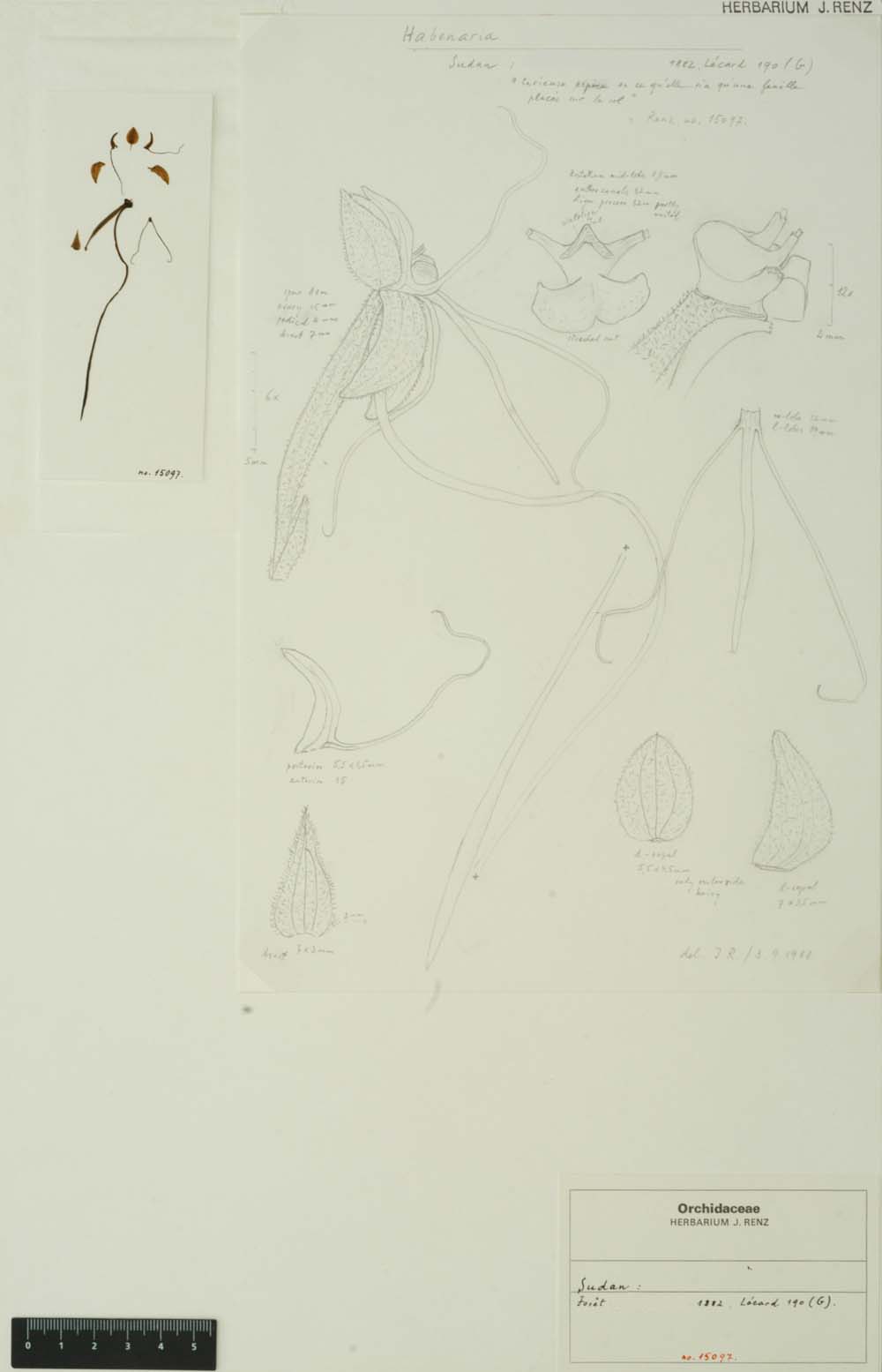 Habenaria lecardii Kraenzl. 1892 Collection sheet and Drawing by © Renz and the Swiss Orchid Foundation at the Herbarium Jany Renz Website