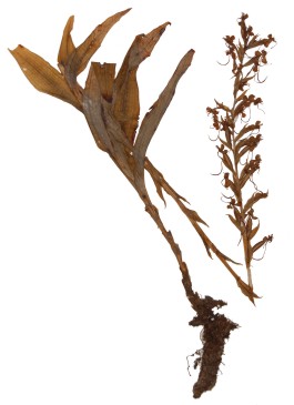 Found in Minas Gerais, Espirito Santo, Rio de Janiero and Bahia states of Brazil within tall grasses and scrub in high montane forests at elvations above 1500 meters as a medium to giant sized, cool growing terrestrial with an erect, thick stem enveloped by erect, lanceolate, acute, basally clasping leaves that blooms in the fall on an erect, 6 to 14" [15 to 35 cm] long, spicate, conical, to 30 flowered inflorescence.