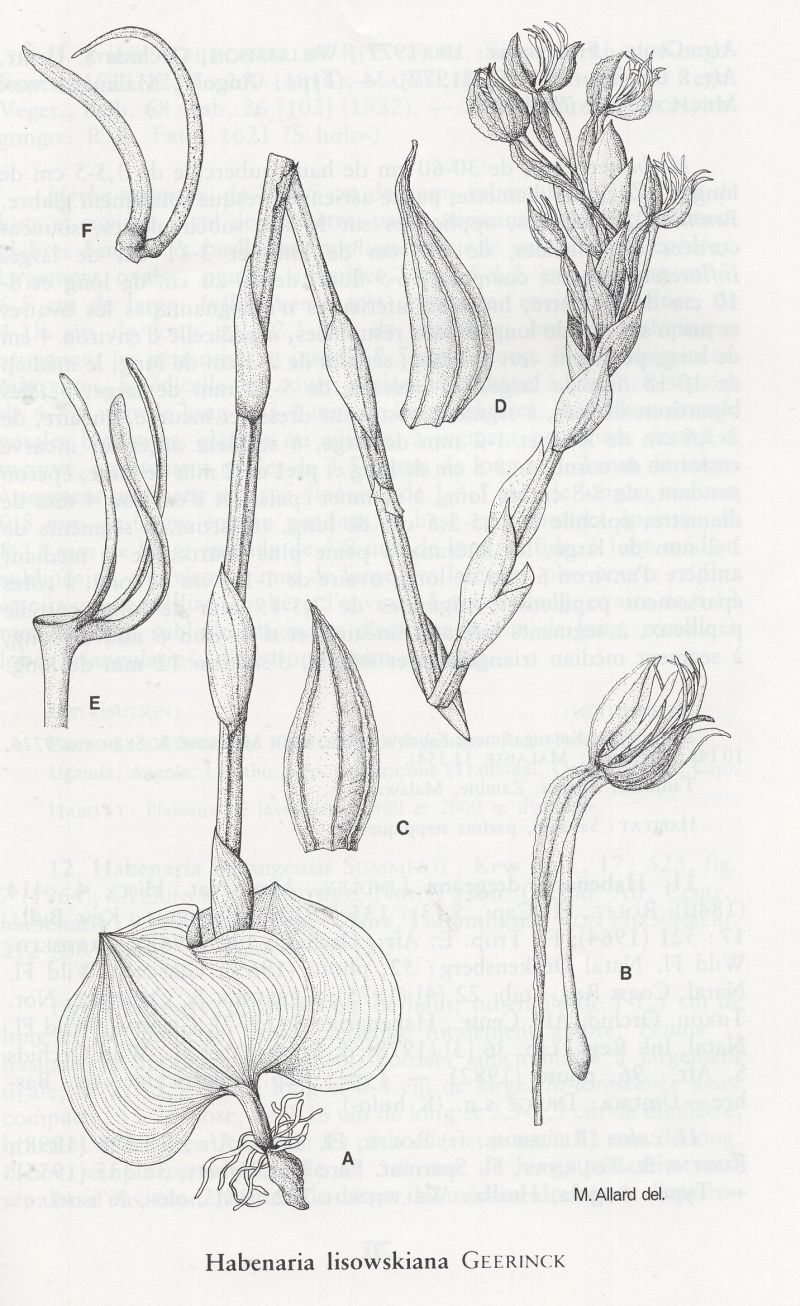 Habenaria lisowskiana Geerinck 1982 SECTION Diphyllae Drawing by © M Allard & Geerinck