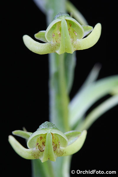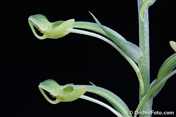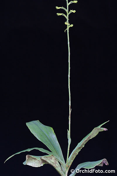 Found in the Chinese Himalayas, Myanmar, Thailand, Laos, Cambodia and Vietnam in deciduous and bamboo forests at elevations around 50 to 1300 meters as a medium to large sized, hot to cool growing terrestrial with an erect stem carrying a whorl of 2 to 6, cauline, elliptic, acute, green above, lighter green spattered with purple below leaves grading above into 5 to 10, erect to suberect, lanceolate, acuminate, margins minutely denticulate to shortly hairy sterile bracts that blooms in the later summer and early fall on an erect, terminal, 6 to 9.2" [28 to 75 cm] long, several to many flowered inflorescence with a 4.4 to 14.8" [11 to 37 cm] long rachis carrying lanceolate to ovate-lanceolate, shorter than the ovary, acuminate floral bracts